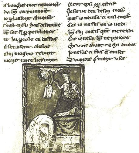 Fig. 1.10 Gautier de Coinci. Miniature, 1260–1270. Brussels, Bibliothèque royale Albert 1, MS 10747, fol. 3r. Image courtesy of Bibliothèque royale Albert I, Brussels. All rights reserved.