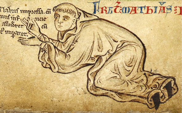 Fig. 1.36 Kneeling monk (Matthew Paris). Miniature by Matthew Paris, 1250–1259. London, British Library, MS Royal 14 C VII, fol. 6r. Image courtesy of British Library, London. All rights reserved.