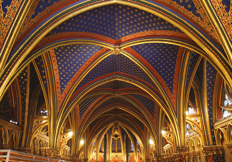 Fig. 1.24 Ceiling of the Lower Chapel of Sainte-Chapelle, Paris. Photograph by Benh Lieu Song (2007). Image from Wikimedia Commons, © Benh Lieu Song (2007), CC BY-SA 3.0, https://commons.wikimedia.org/wiki/File:Ste_Chapelle_Basse_s.jpg