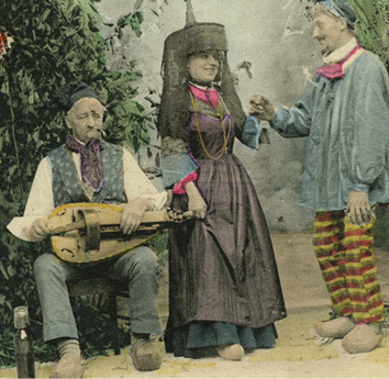 Fig. 1.27 Postcard depicting dancers and a man with a vielle à roue, also known as a hurdy-gurdy (L. Ferrand, 1911).