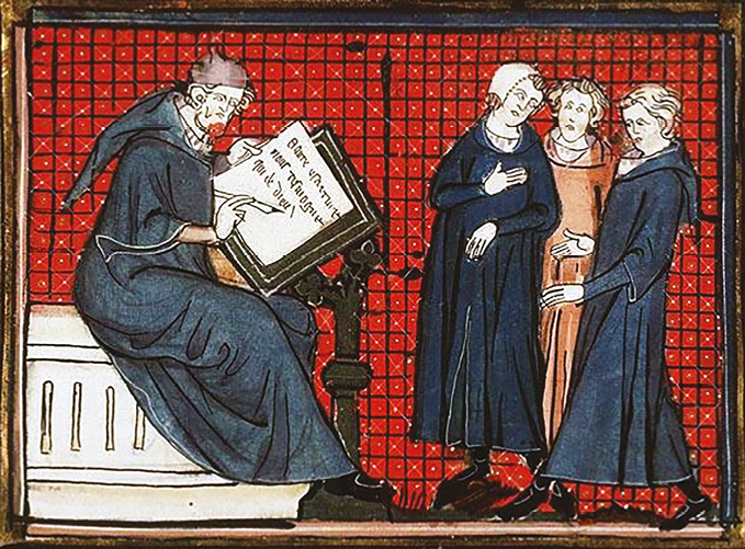 Fig. 1.2 Gautier de Coinci at work. Miniature by Fauvel Master, 1327. The Hague, Koninklijke Bibliotheek 71 A 24, fol. 49v. Image from Wikimedia Commons, https://commons.wikimedia.org/wiki/File:Gautier_de_Coinsi.jpg