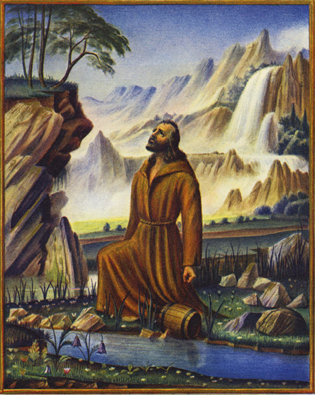 In “Miserere,” a simple but goodhearted man makes up his mind to give up all his possessions and to join a holy hermit, which the solitary allows. The recent arrival prays repetitiously, using shaky phraseology in the learned language that does not follow the wording of the biblical verse as it should. Liking the text for its sincerity and humility, God causes a miraculous glow to gleam whenever the unflashy fellow worships. Unaware of God’s favor and the miracle, the recluse insists that the beginner use only the proper Latin. The miracle ceases, the man is distressed, and in his perturbation, he sickens. One half year later, the ascetic visits, discovers what has transpired, recognizes the piety of his former companion, and has him return to his earlier practice and phrasing. At this point the light resumes. The hermit witnesses the wonder. Duly awestruck, he remains with the man forever after.