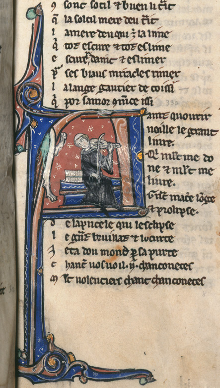Fig. 1.3 Gautier de Coinci (detail). Miniature, 1260–1270. Brussels, Bibliothèque royale Albert I, MS 10747, fol. 3r. Image courtesy of Bibliothèque royale Albert I, Brussels. All rights reserved.