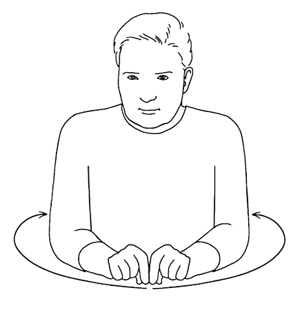 The active flat-hand (the hand is flat with fingers together and extended), palm facing down and fingers pointing diagonally forward, initially rests on top of the stationary flat-hand, palm facing up and fingers pointing diagonally forward to the opposite side. Both hands are in front of the body at lower chest level. The active, upper hand then rubs the stationary, lower hand in a circular motion. (Alternatively, both hands may rub each other.) The act of washing or cleaning one’s hands. A person uses one hand to scrub and clean the other hand. To wash one’s hands refers to the act of cleaning them, often by applying soap and water and then rubbing the hands together to remove dirt. Washing the hands helps to kill germs and bacteria and aids in the prevention and spread of many common diseases (such as cold and flu viruses). |